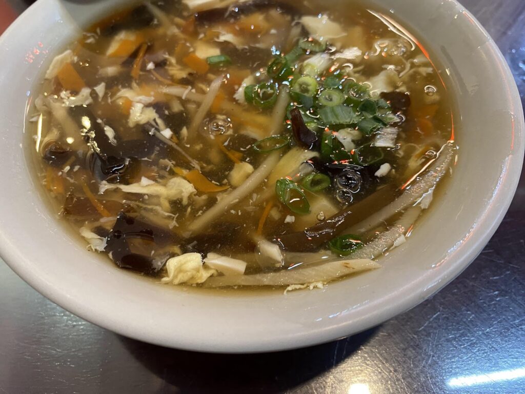 底に胡椒やお酢がたまっているので、よく混ぜてから食べるのがおすすめ。シンプルながらもしっかりした味で美味しい酸辣湯です。