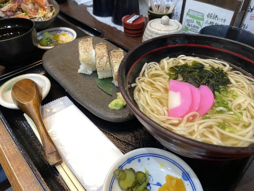 〇あご出汁五島うどんと炙り〆サバ寿司定食:¥1,000