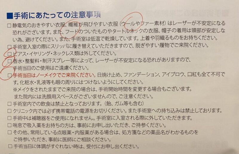 手術当日の服装/注意点