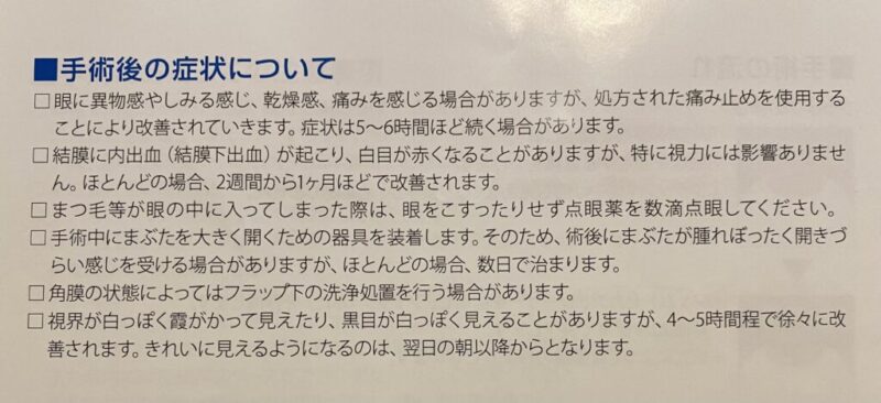 目薬をさすときのしみる感じやゴロゴロ感も手術3日後あたりからすっかりなくなりました。