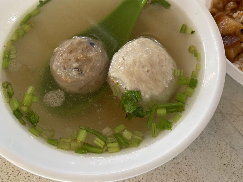 貢丸(肉団子)と魚丸(魚のつみれ)がひとつずつ入っています。
